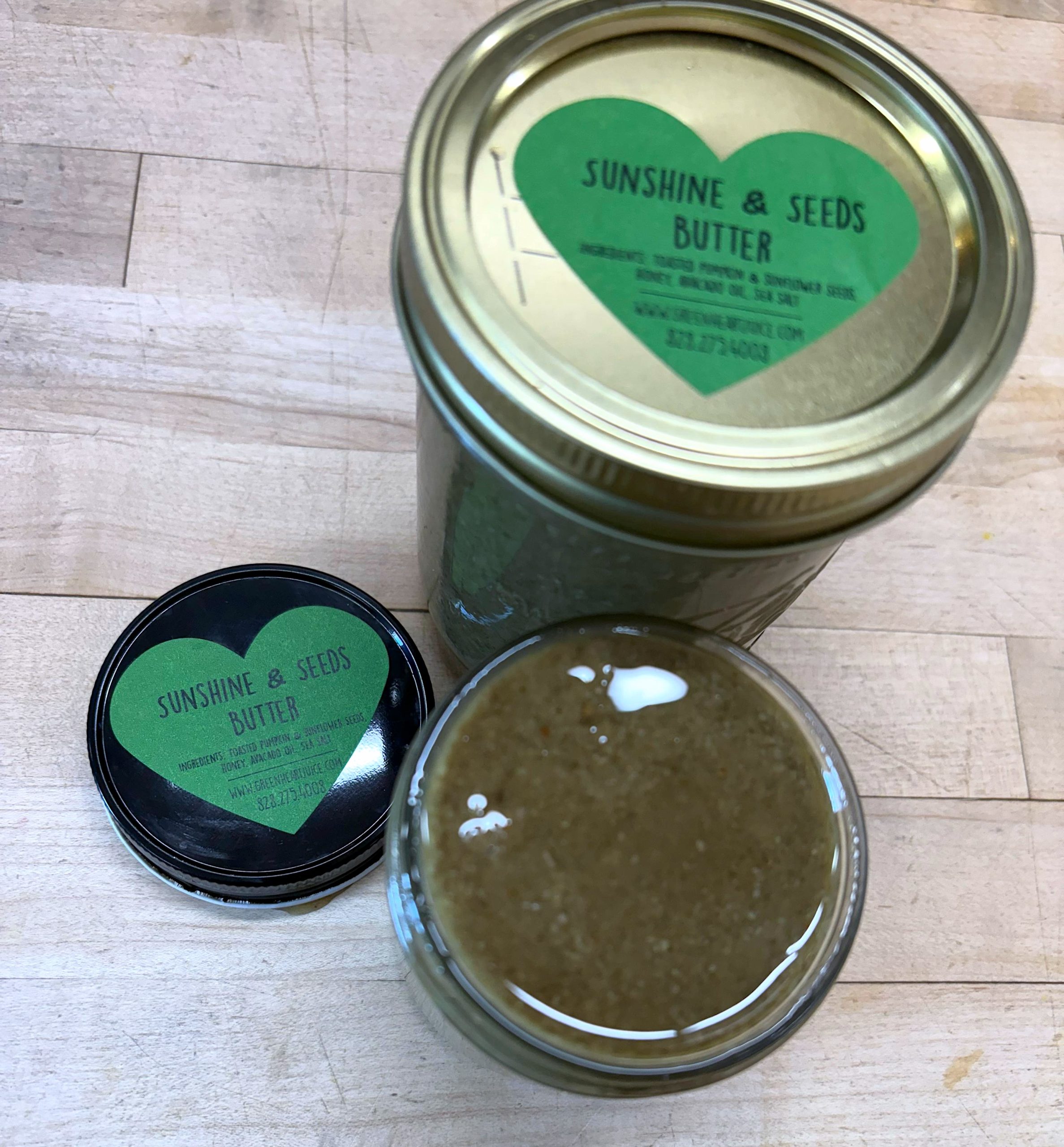 Sunshine & Seeds is a toasted sunflower and pumpkin seed butter with local Bee.Honey and Hive honey, avocado oil, and a touch of sea salt.