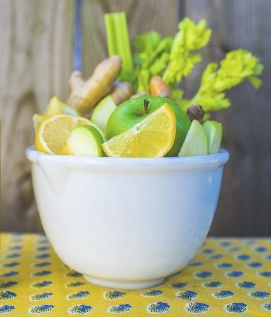 Ingredients: celery + lemon + splash of Granny Smith apple + ginger